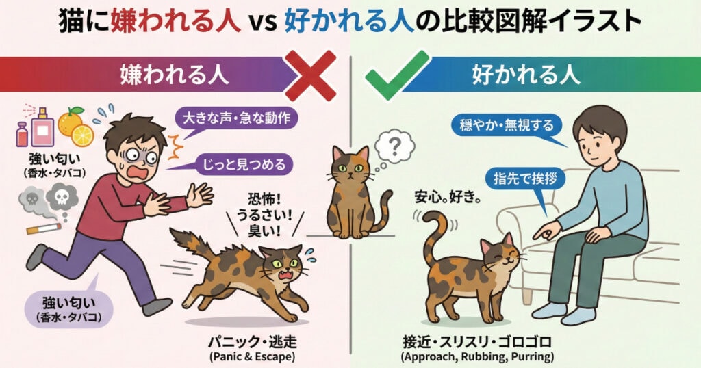 「私はこんなに猫が好きなのに、なぜか逃げられてしまう…」 「あの人、特に猫好きじゃないのに、なぜか猫が寄っていく…」