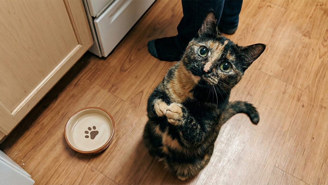 - サインの見分け方: 声色だけでなく、「視線の先」をチェック。あなたではなくフードボウルや棚を見ているなら空腹のサインです。