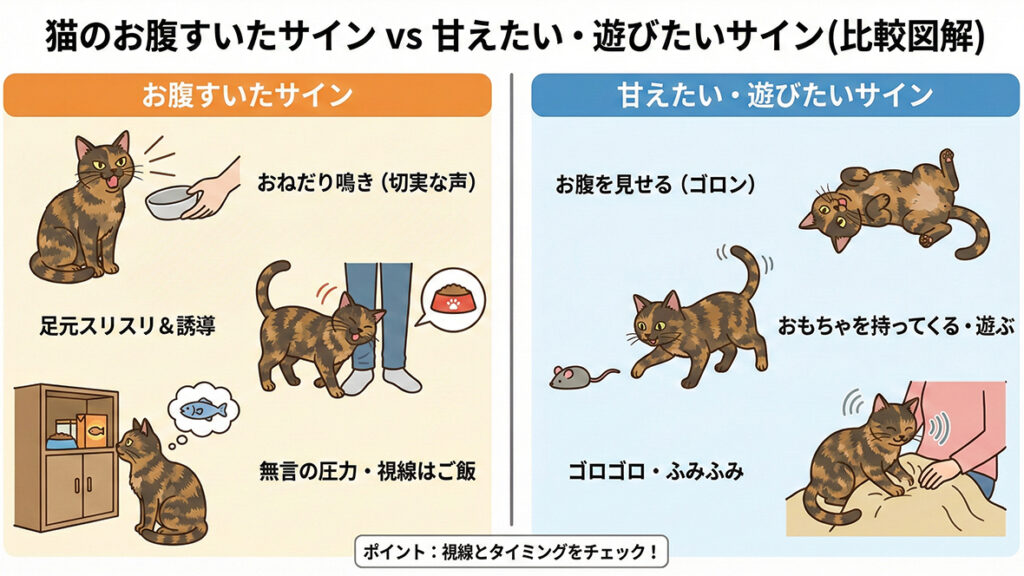 【見分け方】お腹がすいたサイン vs 甘えたい・遊びたいサイン